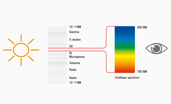 Licht bestaat uit elektromagnetische deeltjes die reizen in golven, deze golven variëren in lengte en sterkte. Het menselijk oog is slechts gevoelig voor een beperkt deel van het spectrum, wat we zichtbaar licht noemen en als kleur zien.